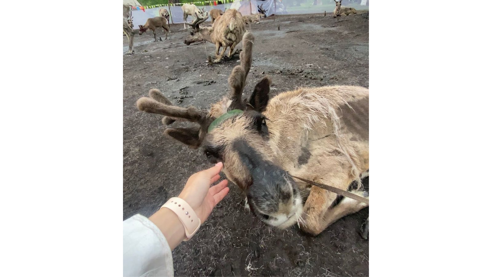 Once you arrive you see a number of stalls selling all kinds of items, including reindeer-related trinkets (reindeer cup anyone?). In the centre you will see what you came for…reindeer! What’s really cool is there are a wide variety, young, old, brown and white reindeer, all of which you can get a photo with.